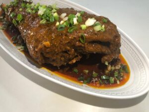 O Pernil de Carneiro do Sertão em redução com vinho branco do Vale do São Francisco é uma das criações da culinarista e chef de cozinha Maria Augusta de Petrolina-PE . Um prato realmente à moda do nosso Vale