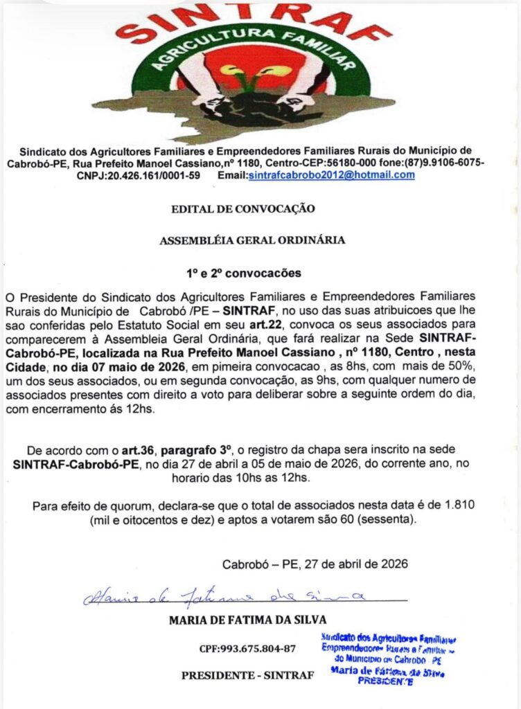 Pernambuco, 28 de abril de 2026
